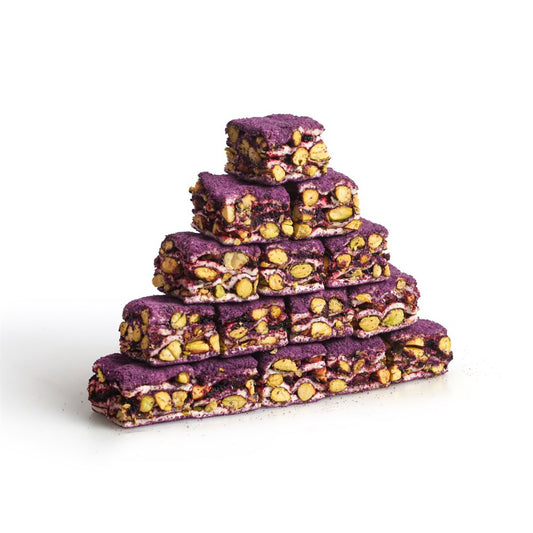 Unsere Produkte werden traditionell ohne Glukosesirup hergestellt – stattdessen verwenden wir hochwertige Zutaten wie Pistazien, Rosenblätter, Holunder oder feinste Schokolade.